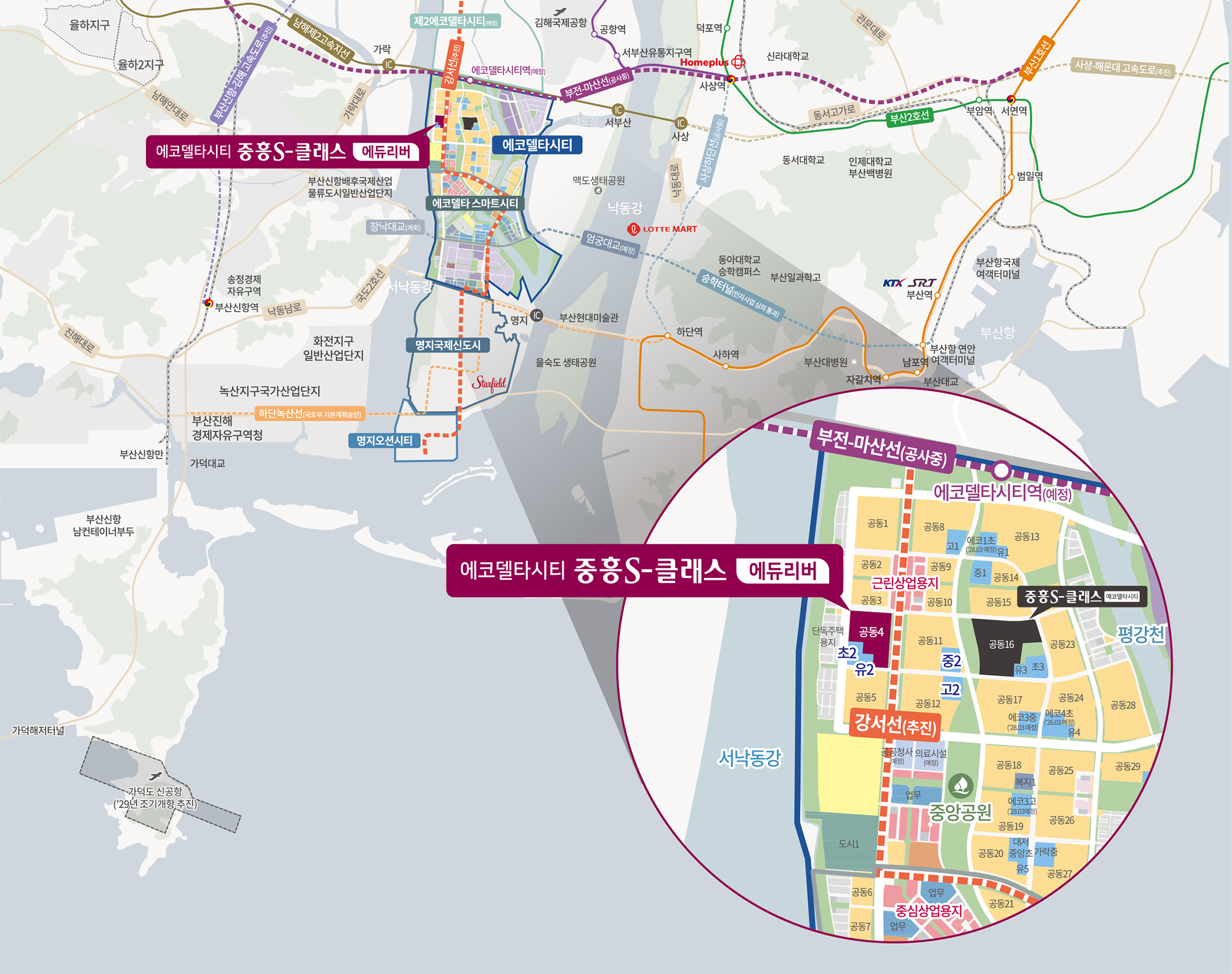 서부산IC, 명지IC, 부전-마산선(예정),강서선 트램(예정), 부산역 바로 잇는